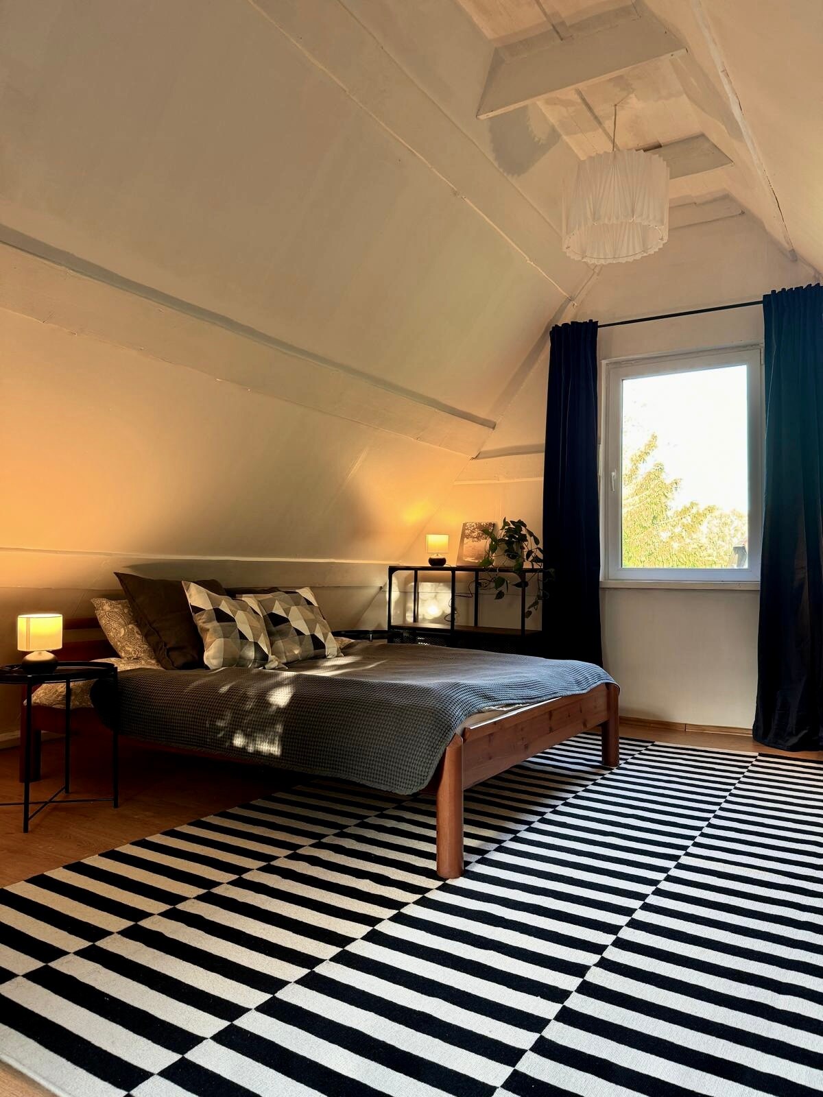 La casa de vacaciones está situada en una tranquila zona residencial. En la planta baja hay una cocina totalmente equipada combinada con un salón y una chimenea, un dormitorio separado, una ducha y un aseo. El ático tiene cuatro colchones de 90x200m. Los huéspedes tienen acceso a Wi-Fi rápido y gratuito y TV. Un lugar ideal para familias con niños. La sauna tiene un coste adicional. El parque Lielvarde está cerca. El río Daugava está a pocos minutos a pie. No se permiten mascotas, fiestas ni fumar en el alojamiento.