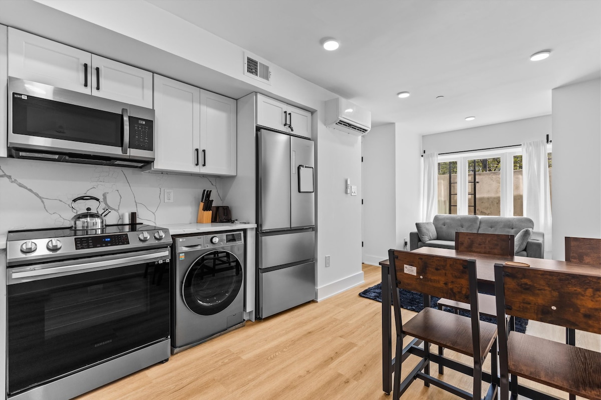 Elegante oasis de 1 dormitorio con aire acondicionado, lavandería, ¡junto al parque!