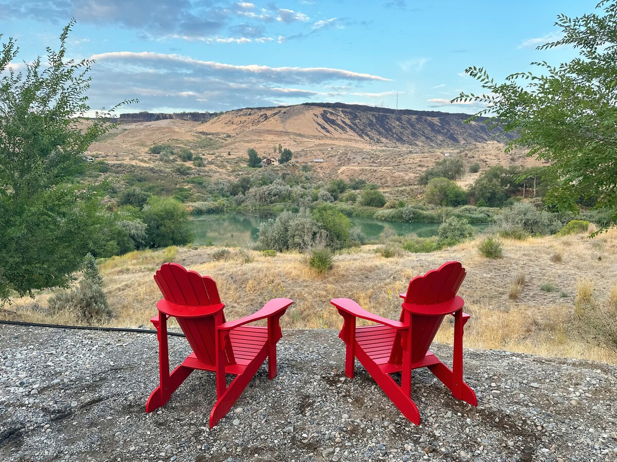 Esta acogedora cabaña es una planta abierta con loft, ubicada en 10 acres privados frente al río con vistas al río Snake. ¡A SOLO 7 minutos de la autopista! El lugar tiene un gran lugar de pesca en el río justo debajo. La vista del río es increíble desde la cabaña y es una escapada única. Tiene una bañera de hidromasaje, chimenea y muchos asientos al aire libre. No hay mucha contaminación lumínica, por lo que contemplar las estrellas es una ventaja definitiva aquí. Gansos, pelícanos, águilas, halcones, búhos y ciervos frecuentan la propiedad. ¡Gran ATVing!