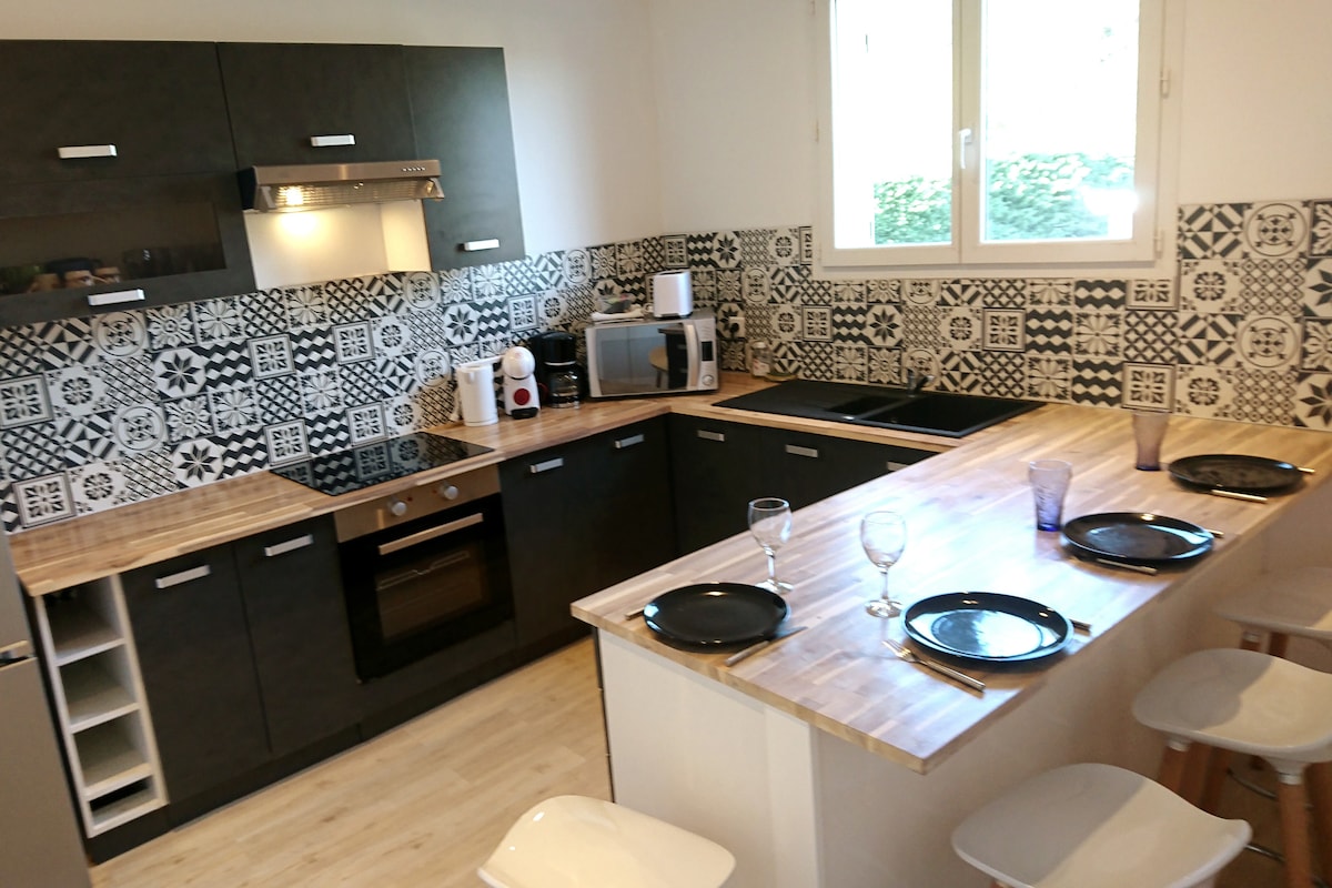 En un pequeño pueblo,casa de una planta que consta de 2 dormitorios, cuarto de baño, aseo, gran sala de estar con cocina y sala de estar, gran jardín privado.Posibilidad de aparcar el coche en este jardín . Equipamiento: lavavajillas, lavadora, microondas, TV, wifi, plancha y tabla de planchar, cafetera de cápsulas blandas y cafetera clásica. Barbacoa, mesa, sillas en el exterior. Calefacción eléctrica (o leña). Se proporcionan sábanas y toallas. Numerosos lugares de interés. Fiestas y reuniones están prohibidas