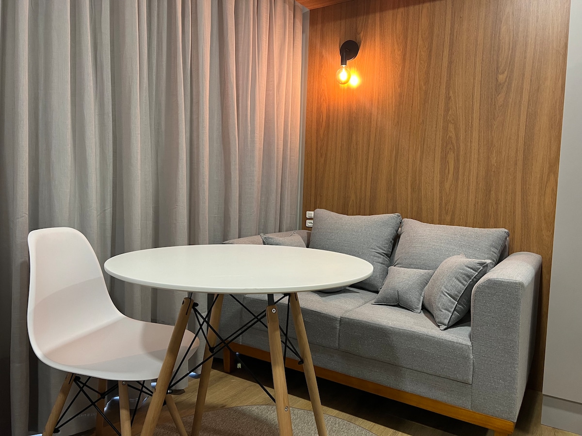 Sofisticado apartamento tipo estudio ubicado a 800 metros del parque Vila Germânica, lugar de eventos como el Oktoberfest. Rodeado de restaurantes, bares y supermercados. Todo para su comodidad: Smart TV 50" Samsung, aire acondicionado split, ducha de gas, wifi fibra 240mb, cocina completa con heladera Brastemp, microondas, horno, estufa, campana extractora, cafetera, purificador de agua, lava y seca, armarios, y por supuesto ¡una cama queen con el mejor colchón!