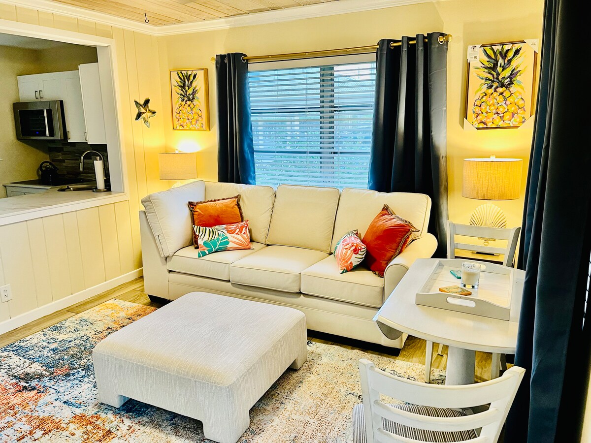 The Buccaneer-Ocean Drive(A1A) en la isla. Nueva unidad limpia bellamente renovada, bellamente amueblada, duerme cómodamente 4 (camas tamaño king o 2 camas individuales y cama tamaño queen) Cocina completa, piscina climatizada, lavandería en el lugar, estacionamiento gratuito sin necesidad de coche como playa,comestibles,tiendas,vida nocturna yrestaurantes(12+), todo dentro de 1 cuadra lateral del océano a lo largo de la galardonada playa "Blue Wave" de DBI. ¡Calificada como una de las playas más limpias de FLA! A pasos del paisaje oceánico visible, el muelle de pesca y una milla de ladrillo pavimentado junto a la playa caminando bajo palmeras pintorescas.