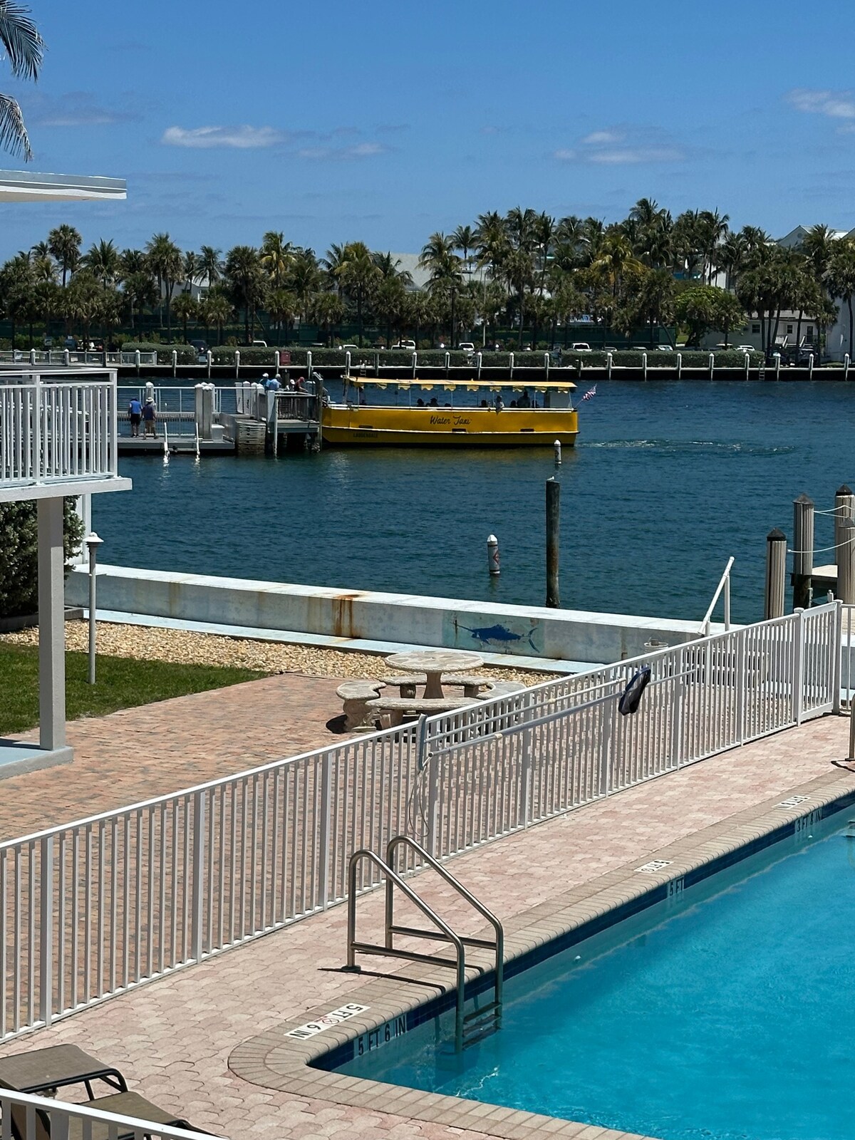 Beautiful 1 bedroom condo located directly on the intracoastal with a heated pool. This unit DOES NOT have water view from the condo BUT has amazing views of the intracoastal waterway from the patio/pool area. Enjoy watching the yachts sail by along with taking in amazing sunsets from the dock. Work from home, 1 block from the beach! Quiet and peaceful. Within walking distance to many shops and local amenities! Perfect for couples, young families and groups of friends traveling together.