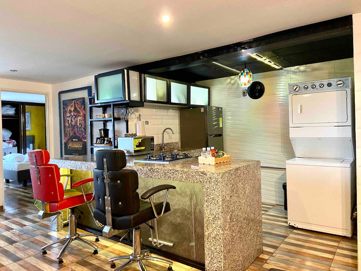 Estudio céntrico en una de las zonas más seguras y de moda de Chapinero, el corazón de la comunidad creativa de Bogotá. Disfruta de un espacio abierto con ventanas grandes y luminosas, proyector con Netflix e internet de fibra óptica. A 1 cuadra de estación de bicicletas compartidas, Zona G, Quinta Camacho y Chapinero Alto. Barrio 🏳️🌈 friendly