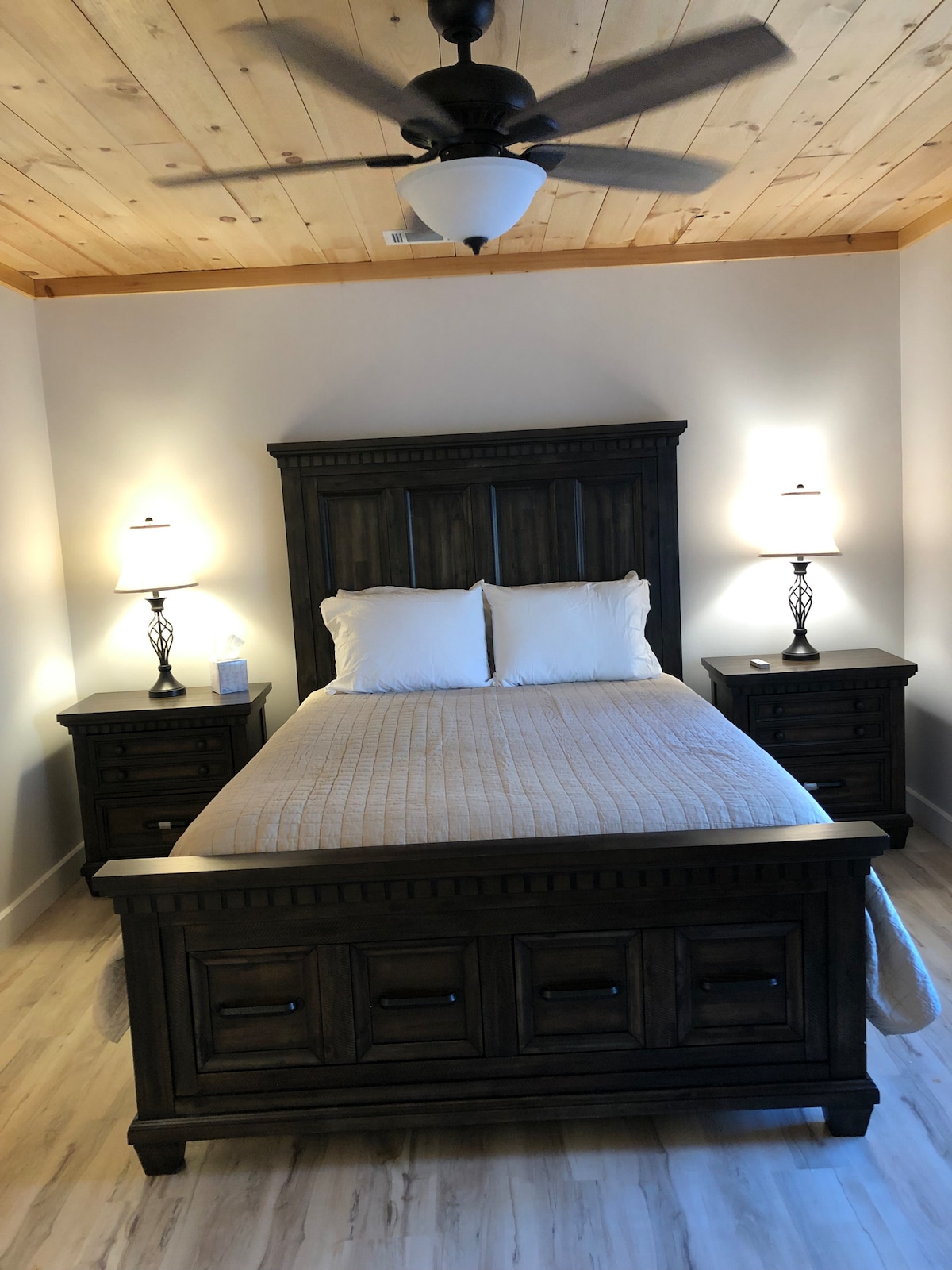 ¡Disfruta de la experiencia de la granja o de una escapada tranquila en nuestra acogedora casa de campo! Diseñada para ofrecer la máxima comodidad en solo 192 pies cuadrados, es el lugar perfecto para escapar. Aunque está diseñada para dos personas, podemos proporcionar un colchón doble adicional. La cocina pequeña incluye una nevera/congelador compacta, microondas y cafetera. La cama tamaño queen junto a la chimenea es el lugar perfecto para ver una película o leer un libro, o disfrutar de un café y puestas de sol desde las mecedoras en el porche envolvente. ¡Esperamos verte pronto!