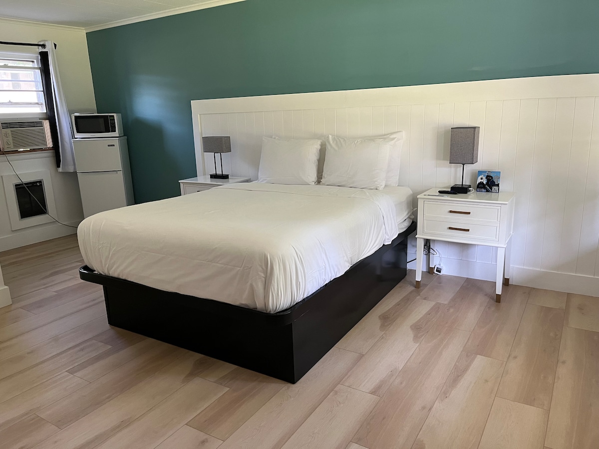Esta habitación estándar para no fumadores en la ubicación junto al lago, ideal para parejas, cuenta con una cama tamaño queen, un televisor de pantalla plana de 50 pulgadas, WIFI gratuito, una cafetera, un microondas, un refrigerador y un aire acondicionado climatizado. Tu habitación queen tiene capacidad para un máximo de 2 huéspedes y cada habitación tiene baño privado con ducha/bañera combinada.