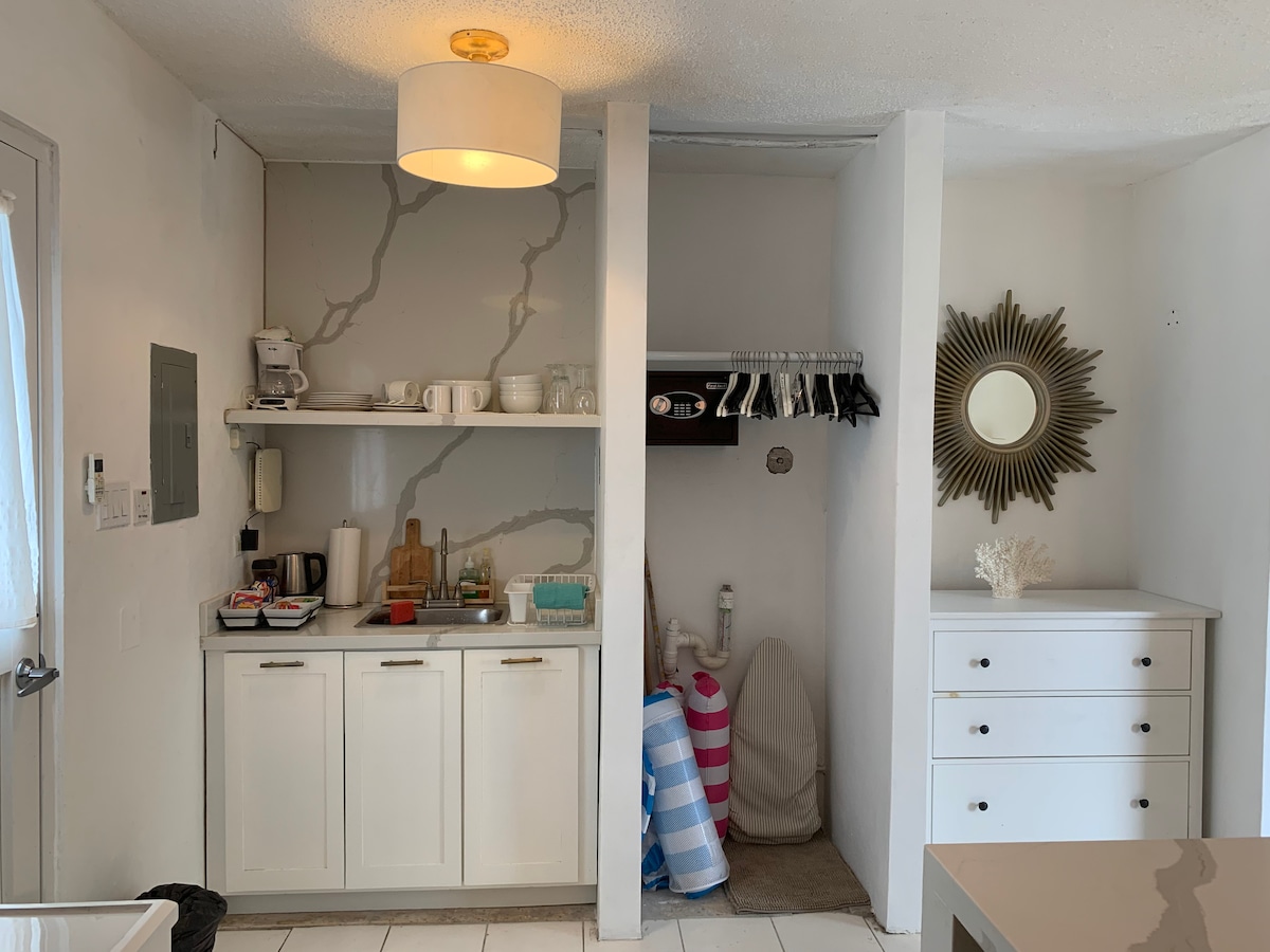 NO hay ESPACIO COMPARTIDO: solo el espacio compartido es el POOL. Disfruta de una experiencia elegante en este complejo de apartamentos de estilo hotelero céntrico. Apartamento estudio privado con vistas completas al mar, incluso cuando se acuesta en la cama flotante futurista. Muebles y electrodomésticos modernos y elegantes para tu comodidad. Restaurantes locales y playa a solo dos minutos a pie. ¡Hermosa propiedad cerrada con piscina climatizada! Este departamento es digno de redes sociales/ imagen perfecto: ¡presumir y disfrutar !