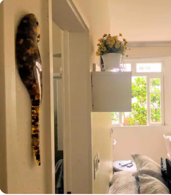 Apto para 1 persona, estilo loft/plano, aire acondicionado en la sala de estar y el dormitorio, TV inteligente en la sala de estar, internet, refrigerador sin escarcha, microondas y todos los utensilios. Está en el tercer piso (sin ascensor), 1 plaza de estacionamiento (puedes alquilar otra en el edificio) y 1 espacio para motocicletas. Ubicación privilegiada: a solo 200 metros de la playa de Enseada (calle del restaurante Rufinos) Muchas tiendas cercanas (supermercado Extra, panadería, farmacias, carnicería, verdulería, mercado, etc.). Cada estructura que necesitamos sin tener que salir en auto