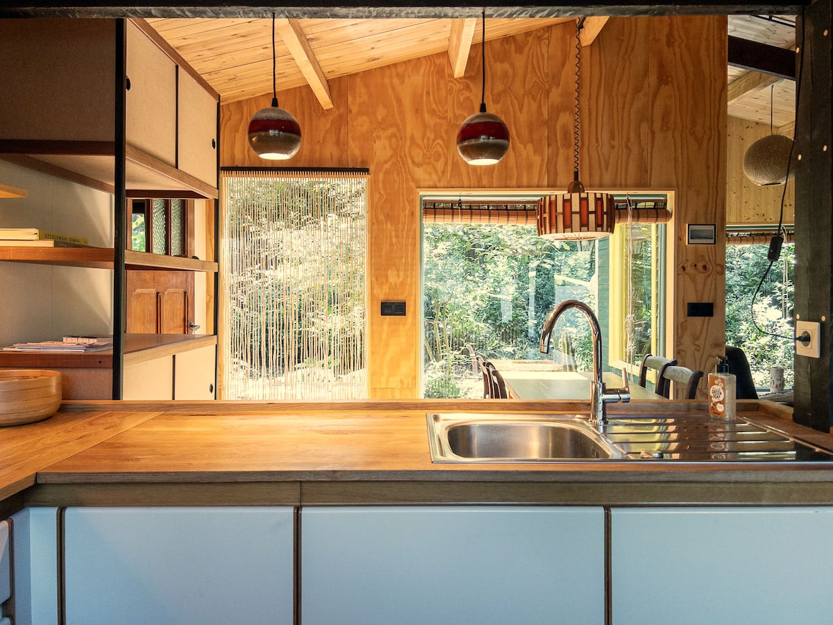 Away from the mainstream holiday parks. No crowds of people. No traffic, no noise, no community pool or kids disco. Lots of beautiful nature, fishing ponds, endless walking and cycling paths and nice restaurants nearby. The Punthuisje is a unique Aframe cabin completely renovated with natural materials and lots of luxury, including a private wellness garden. For an adventurous weekend away or a day and night in the middle of nature at Park Sonnevijver in Rekem - Belgium, close to Maastricht.