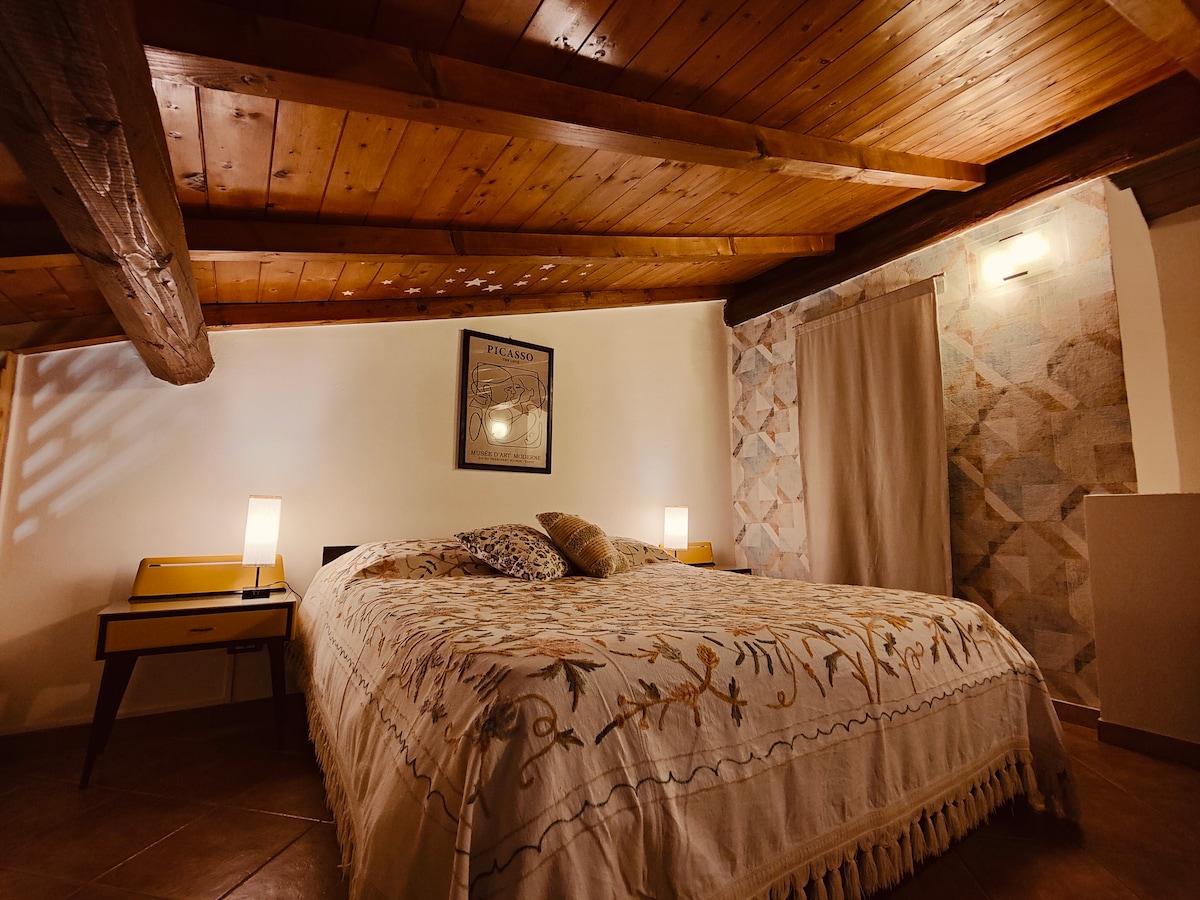 Se trata de un edificio antiguo que data de finales de 1800, completamente renovado en todas sus partes, respetando la estructura de la época, recién terminado. El dormitorio, con vigas a la vista, es muy sugerente y tiene un balcón que permite disfrutar de una vista espectacular de la llanura por un lado y de las colinas por el otro. En la sala de estar se ha conservado la chimenea de leña de la época y en el leñero adyacente se encuentra la leña.