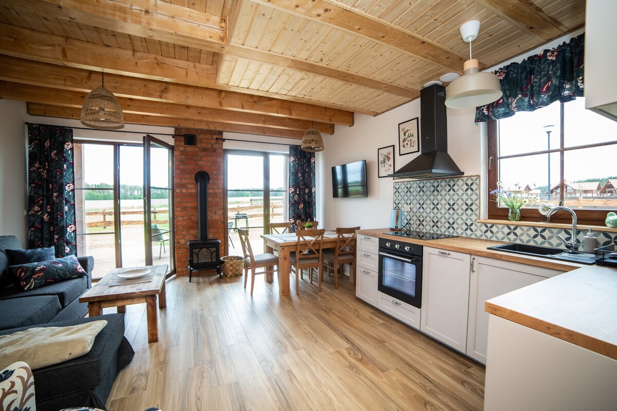 El precio de la estancia incluye acceso ilimitado al jacuzzi y a la sauna. Casa de campo Wabi Sabi para un máximo de 4 personas en el bosque junto a un lago en Casubia. Ofrecemos una casa de dos plantas de unos 45 m2 con dos dormitorios separados, una sala de estar común con zona de cocina, comedor, baño y una gran terraza rodeada de bosque. La parcela en la que se encuentra la casa tiene unos 500 m2 y está vallada. Además, en la gran terraza de madera tenemos un jacuzzi y una sauna solo para los huéspedes de la casa. Nuestra casa es para todo el año, tiene calefacción y una estufa. El lago Sudomie está a 150 m.