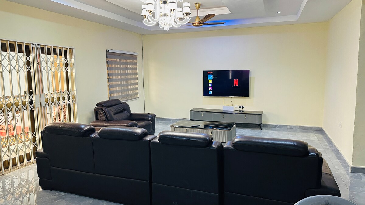 Elegante apartamento de 5 dormitorios con baño en Kumasi, a solo 20 minutos del aeropuerto. Disfruta de una comodidad espaciosa con 5 habitaciones privadas con baño, una cocina completa, lujosas camas tamaño king y queen y estacionamiento gratuito. El jardín del patio trasero cuenta con árboles de mango, coco y naranja. Ideal para familias, grupos o viajes de negocios. • A 10 minutos del centro comercial Kumasi City Mall. • A 12 minutos de Rattray Park. • A 15 minutos del Palacio Manhyia. • A 5 minutos de restaurantes y transporte. Quédate con estilo y comodidad en una de las mejores ubicaciones de Kumasi.