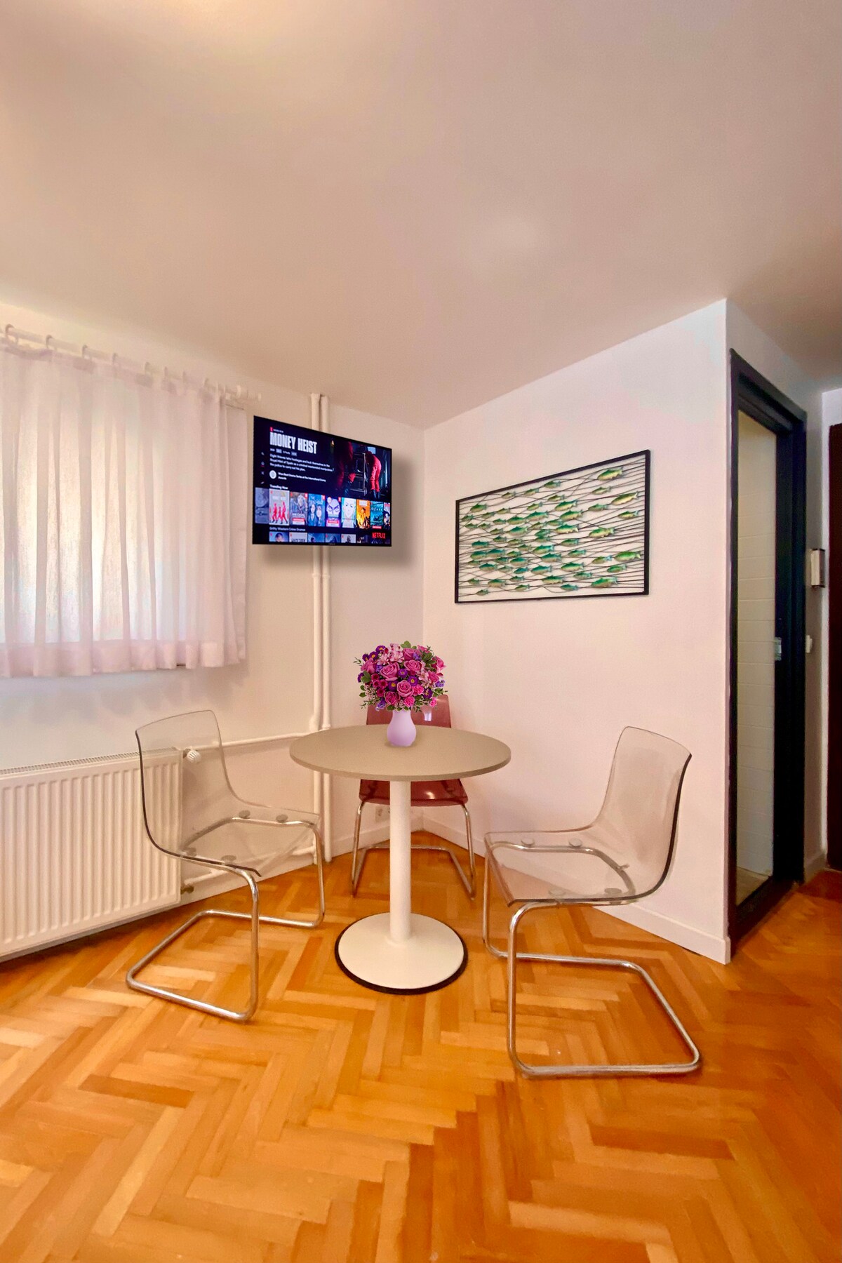 Disfruta de una estancia moderna en Beyoğlu, ¡cerca de Taksim! Este elegante departamento ofrece un dormitorio, sala de estar, cocina y baño con calefacción y aire acondicionado de temporada (mayo-octubre). El edificio cuenta con ascensores, seguridad 24/7, una cafetería e instalaciones sociales pagas (gimnasio, piscina y sauna). Starbucks y Sheraton City Center Hotel están al lado, y puedes encontrarnos fácilmente buscando "Safezone Homes" en Google Maps 🌿
