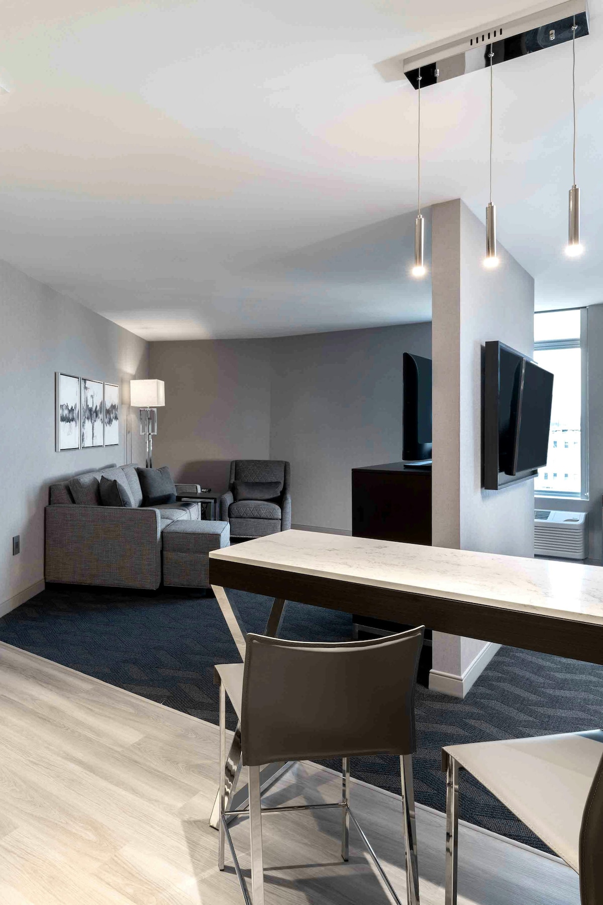 El Residence Inn Roxbury South End es la ubicación perfecta para los huéspedes que visitan Boston. Cerca de colegios, universidades y hospitales de la zona, incluida Mass General, nuestra ubicación hace que sea fácil explorar Boston. - A poca distancia a pie de restaurantes y tiendas. - Desayuno bufé gratis. - Cócteles hechos a mano todas las noches en nuestro salón del vestíbulo. - Valet parking disponible (se aplica una tarifa por noche). - Sala de máquinas. - Cocina completa en cada habitación.
