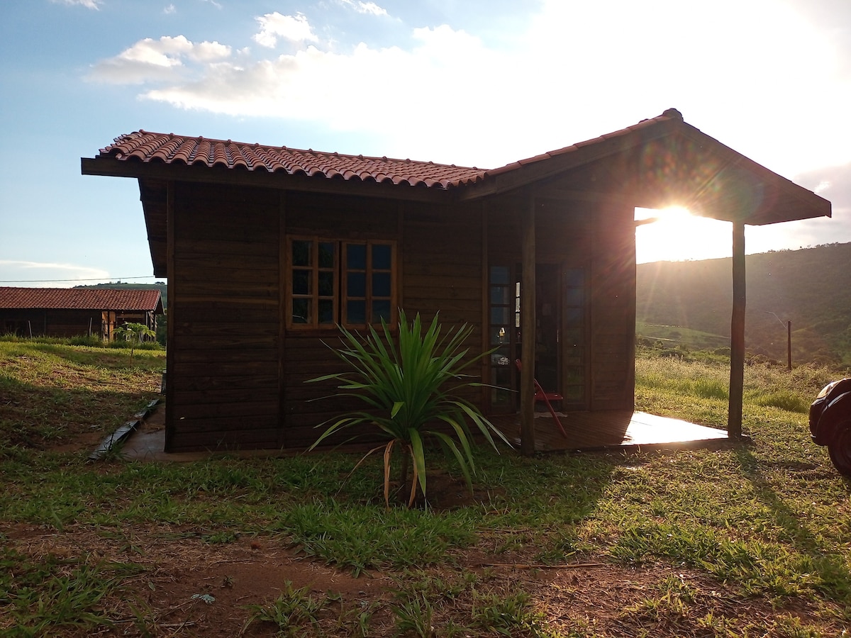 Chalé para Casal com Frigobar, ar-condicionado quente e frio, fogão churrasqueira , área de fogueira e muito mais, é um local para contemplar a natureza, tendo um mirante que dá a visão de toda Cuesta de Botucatu, vista direta do morro do Peru e túnel do trem, que é possível visitar, qualquer dúvida só chamar, estou buscando sempre melhorar para atendê-los melhor (chacara recanto da cuesta)
