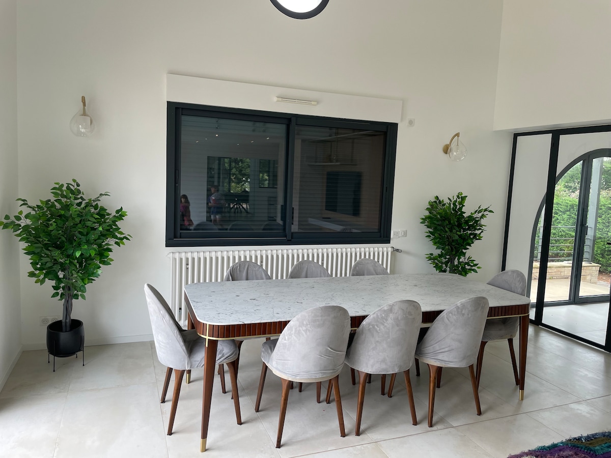 Agradable T5 bio de planta baja integral en RDJ a las puertas de Bayona y cerca de las playas. Ideal para vacaciones, reuniones familiares, seminarios, teletrabajo, inmersión. Gran sala de estar y 4 dormitorios bordeados por una gran terraza sur sin vecinos, con vistas a una pequeña pradera arbolada (SPA bajo petición fuera de temporada... y ciervos con un poco de suerte y discreción). Tiendas, autobuses, carriles para bicicletas y el lago de Castillon en las inmediaciones. Se aceptan hablantes de inglés.