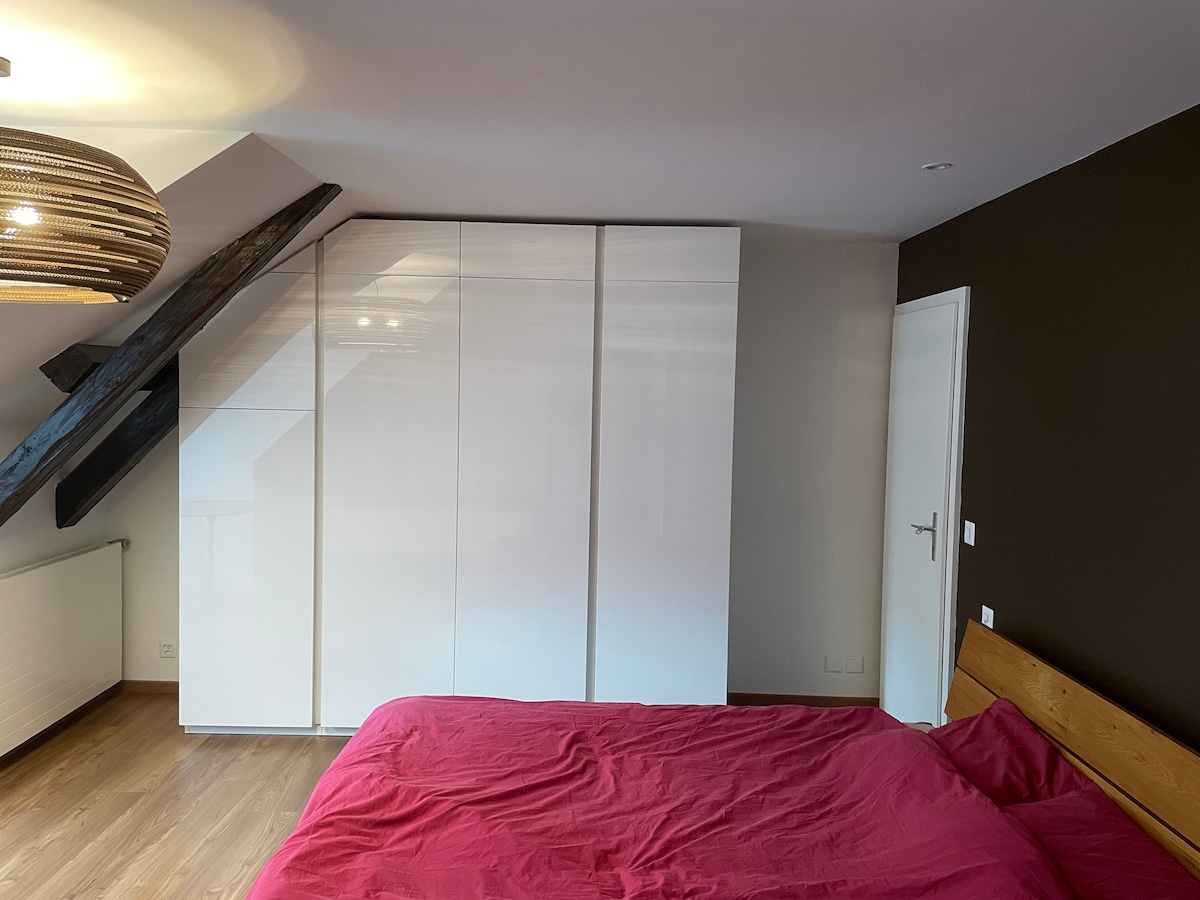Estudio con encanto con un ambiente zen y acogedor, ubicado en el ático de nuestra bonita casa. Vista grandiosa del antiguo pueblo vitícola de Auvernier, el lago y los Alpes. Acceso al lago por el camino de los viñedos en 10 minutos Tren, autobús y tranvía en las inmediaciones. A 6 minutos en tren de Neuchâtel Lugar de estacionamiento privado en frente de la casa Rincón de jardín bajo el tilo para picnic y descanso