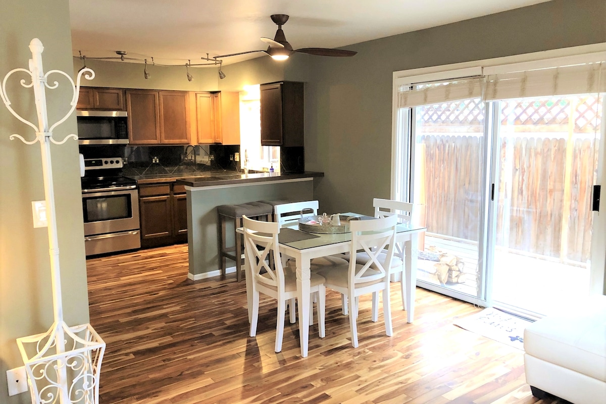 ¡Lindo escondite en el centro de Boulder! Habitación estudio limpia y acogedora con baño privado, comodidades y zona exterior. Arquitectónicamente conectado con un hogar principal con una familia amable. Por favor, ten en cuenta que, como el apartamento está conectado a la sala de estar principal, el sonido silencioso viaja entre los espacios. Honramos el horario tranquilo entre 10 y 7. La mayoría de los huéspedes no encuentran que esto sea un problema. Como se ve en las fotos, la cama Murphy se puede plegar durante el día para tener más espacio.