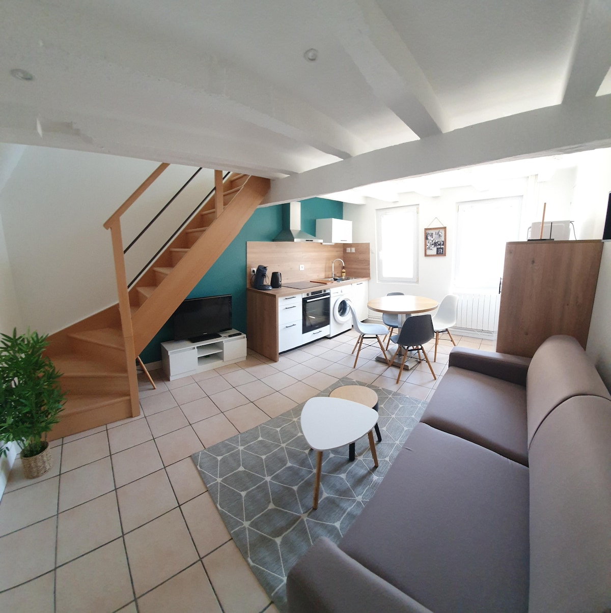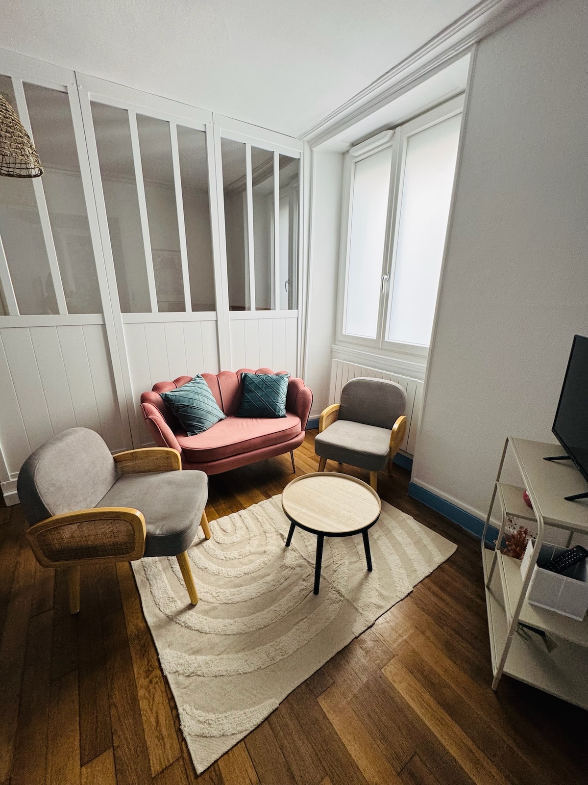 Interior moderno en un edificio antiguo. Hermosa estructura, renovación reciente. Bonito espacio habitable, tranquilo, pero en el centro de la ciudad. Fácil aparcamiento alrededor, aparcamiento contiguo o amplio aparcamiento gratuito a 100 m, ¡muy raro con el nuevo plan de tráfico! Cerca de tiendas (pequeño supermercado,panadería ,farmacia ,) al pie de la Catedral . Cerca del centro de formación de La Défense (CFD) y de la Casa de la Cultura. Cerca de Sancerre (pueblo favorito de los franceses)
