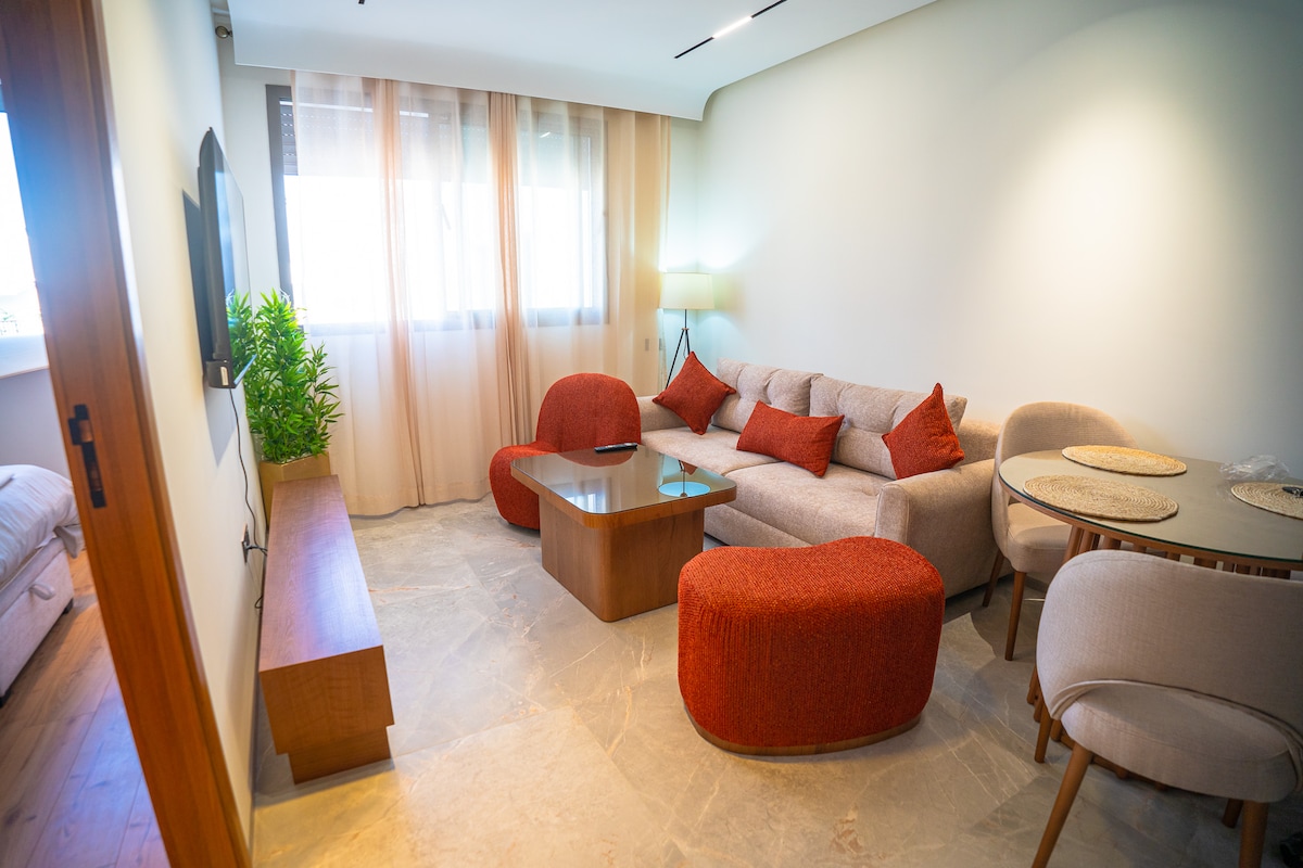 Elegante refugio de 1 dormitorio en Casablanca con estacionamiento gratuito