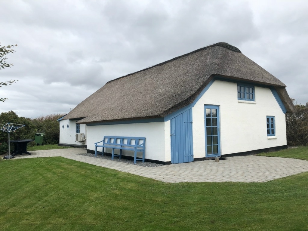 Dette skønne, stråtægte hus ligger helt ugeneret i læ bag klitten lige ud til Vesterhavet og har en vidunderlig udsigt over ådalen og dens rige dyreliv. Her er en helt særlig atmosfære og huset er skønt uanset om I vil hygge jer med familie og venner, kommer for at nyde roen og det vidunderlige landskab eller vil sidde koncentreret med noget arbejde. Der kan altid findes læ lige omkring huset, hvor solen er fra den står op, til aftenen falder på. I kan gå ned at bade på få minutter.
