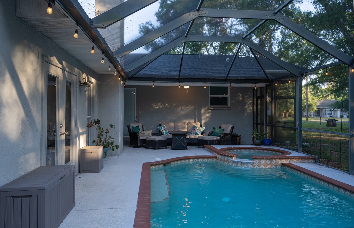 ¡Te damos la bienvenida a tu oasis privado de la piscina Bradenton! Esta casa de piscina climatizada está bien situada y bien mantenida en un callejón sin salida y es céntrica a la playa (a 15 minutos en auto de la isla Anna Maria), IMG Academy, The Bradenton Country Club, el famoso Riverwalk, el centro de la ciudad y numerosos restaurantes y opciones de compras. Disfruta de tu propio oasis privado con mucho espacio para tu familia y amigos con 3 dormitorios que pueden alojar a 8 huéspedes y una cuarta habitación adicional que puede alojar a 2 huéspedes adicionales.