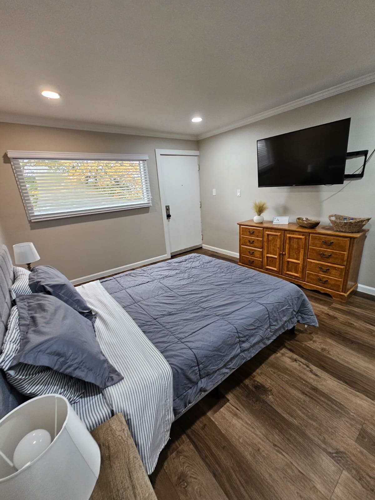 Este estudio de aproximadamente 300 pies cuadrados está ubicado en la planta baja y cuenta con una cama tamaño queen, una cocina pequeña y un baño completo. Además de tu estudio privado, el edificio ofrece servicios compartidos en la planta baja, incluida una sala de estar en la casa club con comedor y sala de estar, una cocina completa y una zona de estar común.