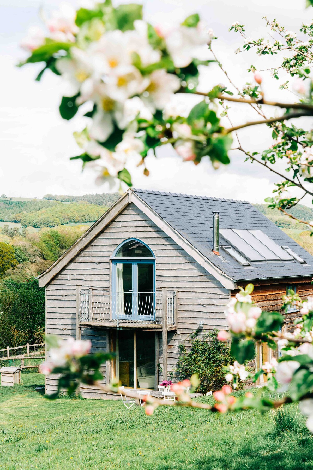 Como aparece en la revista Country Living. Rodeada de huertos y prados de flores silvestres, esta casa de campo ecológica con estructura de madera tradicional y hermosamente construida tiene unas vistas impresionantes. Explora los terrenos de tres hectáreas y media, relájate en el balcón o mantente cómodo junto a la estufa de leña. 3 dormitorios, capacidad para 7 personas.