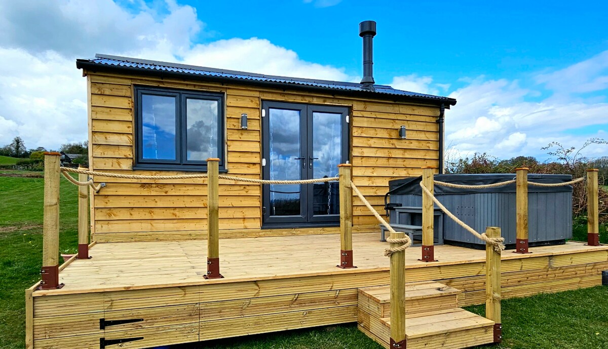 Elegante cabaña de 3 dormitorios con jacuzzi en la frontera galesa.