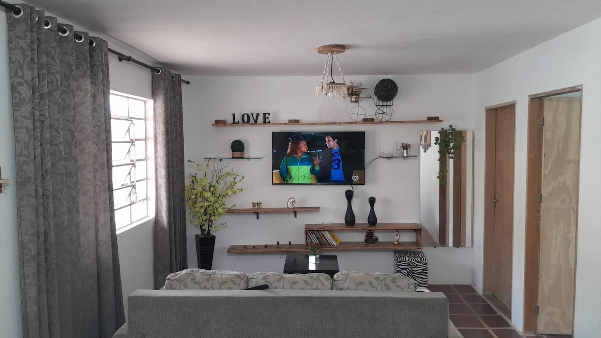 Casa tranquila en medio de la naturaleza, ideal para disfrutar y aprovechar los días de descanso y conocer nuestra huerta orgánica. Nuestra estructura ofrece para uso exclusivo de los huéspedes: - amplio balcón con vistas al bosque - parrilla - 2 habitaciones - sala con sofá cama - 2 baños con ducha - cocina con utensilios - ropa de cama y toallas - agua potable Tenemos internet WiFi Sigue nuestro perfil en @do_sitio