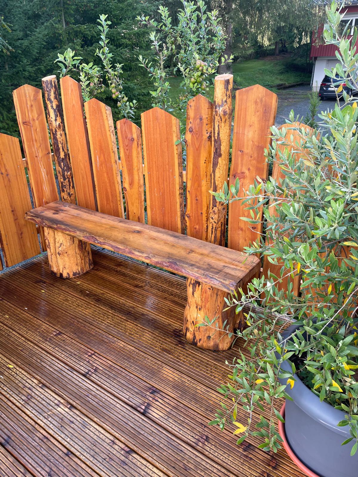 Beautiful log cabin 400m away (approx. 7 minutes on foot) from Lake Bernstein. Very quiet location surrounded with trees and beautiful small holiday homes. The garden is overgrown with plants so that it cannot be seen in from outside and is exclusively available. A Gasgrill and fireplaces both inside and outside with wood is included. Whirlpool (75€ / stay; April-Oct.) and sauna (25€ for / night; all year) can be booked for additional cost. A Carport for one car (up to 2 m high) is available.