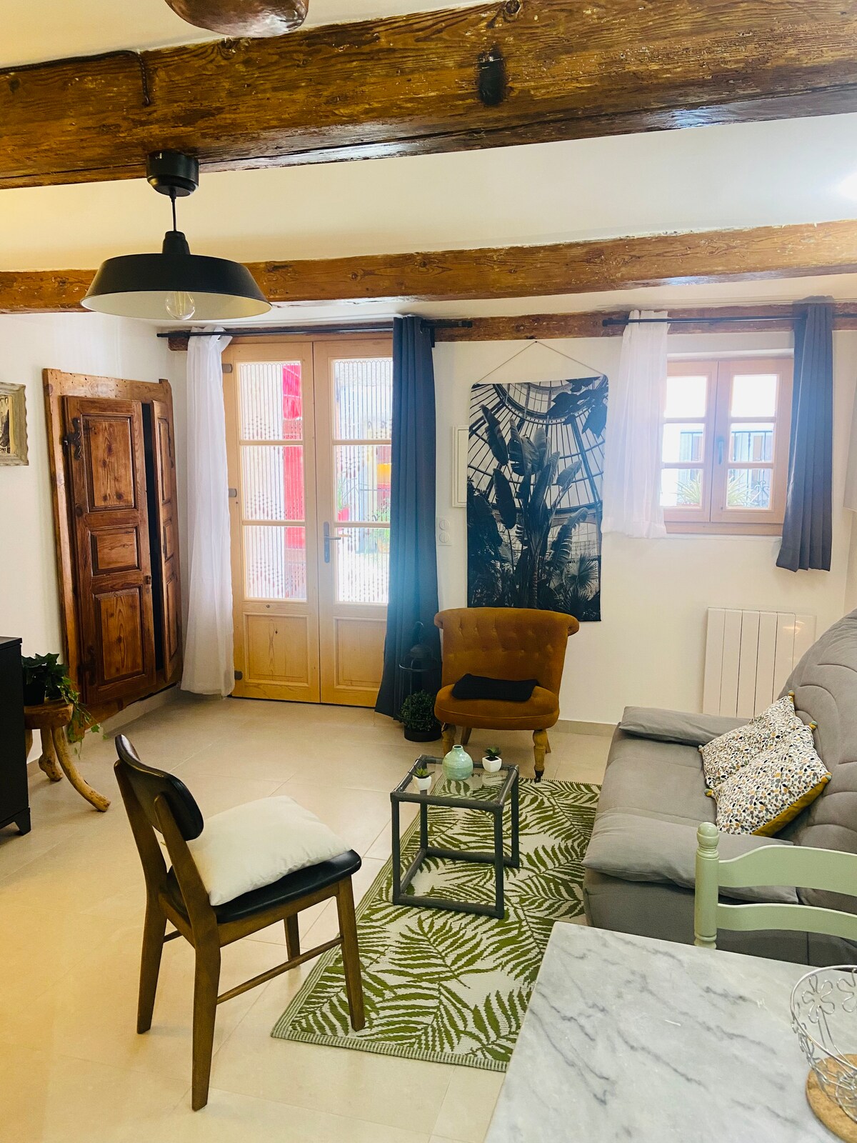 Pequeño apartamento reformado, en Grimaldi Superiore (220 m.s.n.m.), un pueblo con vistas al mar, a 6 km de Ventimiglia y a 5 de Menton. Compuesto por sala de estar, cocina luminosa con balcón con vistas al mar y baño. Hay unos veinte escalones para llegar al apartamento. El país ofrece paz y tranquilidad. Se puede llegar a la playa en coche o a pie por un camino entre las bandas en 20/30 minutos. Impuesto turístico de 1 € por día y por huésped hasta un máximo de 7 €. No hay transporte público, se recomienda un coche.