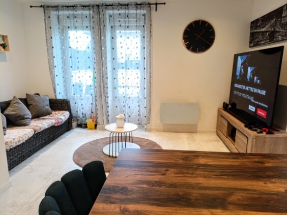 Hemos renovado completamente nuestro apartamento en el centro de la ciudad para convertirlo en un espacio cálido y agradable para vivir. Todo está pensado para su comodidad: una acogedora sala de estar, una cocina equipada, un dormitorio con ropa de cama cómoda y un baño moderno. Encontrará todo lo necesario para una estadía sin preocupaciones: WiFi, lavadora, secador de pelo… Ya sea que esté de viaje o de viaje, ¡estaremos encantados de darle la bienvenida!