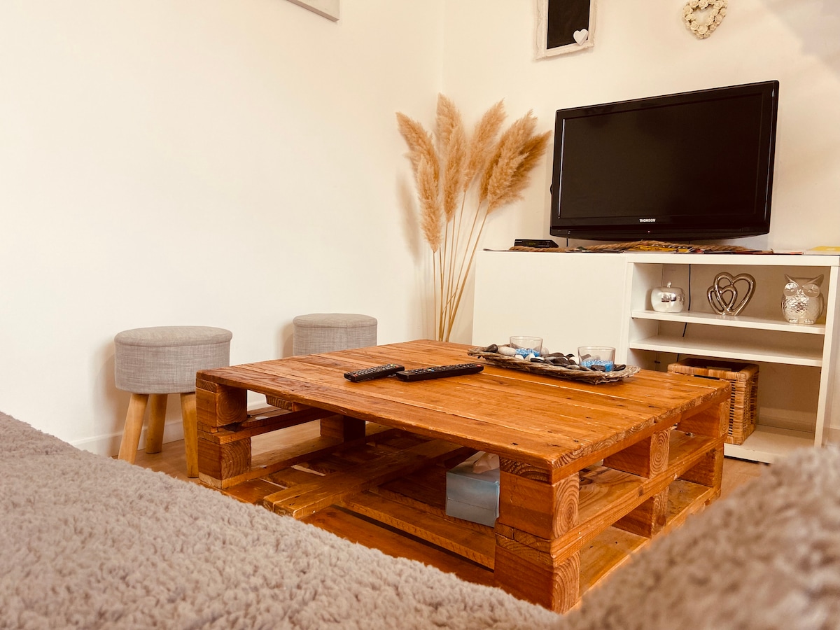 Alojamiento entero En el corazón del pueblo, magnífico apartamento situado en una granja auténtica. Consta de una sala de estar con cocina equipada, un dormitorio con vestidor, una zona de oficina y un baño. El conjunto está en perfecto estado, totalmente amueblado y equipado.