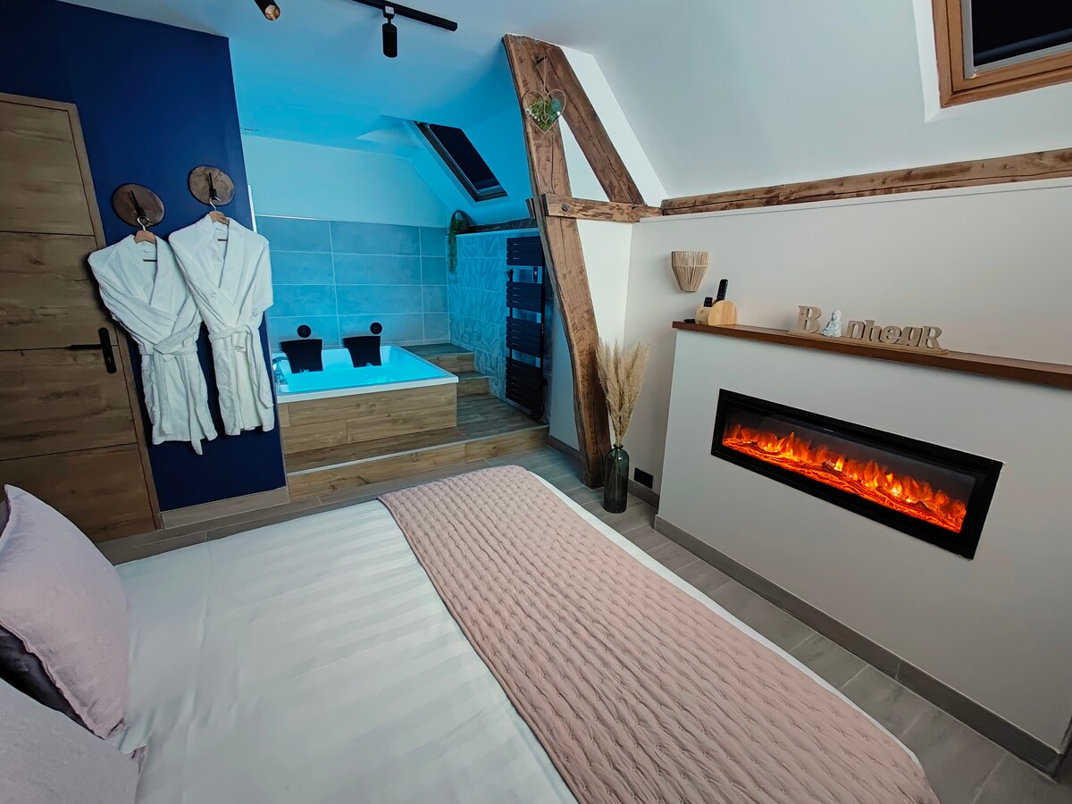 Descubre LA BULLE ROMANTIQUE, tu remanso de paz para un fin de semana en pareja o una escapada romántica. Nuestra elegante y cómoda suite le ofrece un jacuzzi privado para momentos de relajación en total intimidad. Disfrute también de nuestra decoración campestre elegante para un ambiente romántico propicio para la relajación. Ofrecemos desayuno para empezar bien el día. Reserve ahora para una experiencia inolvidable.