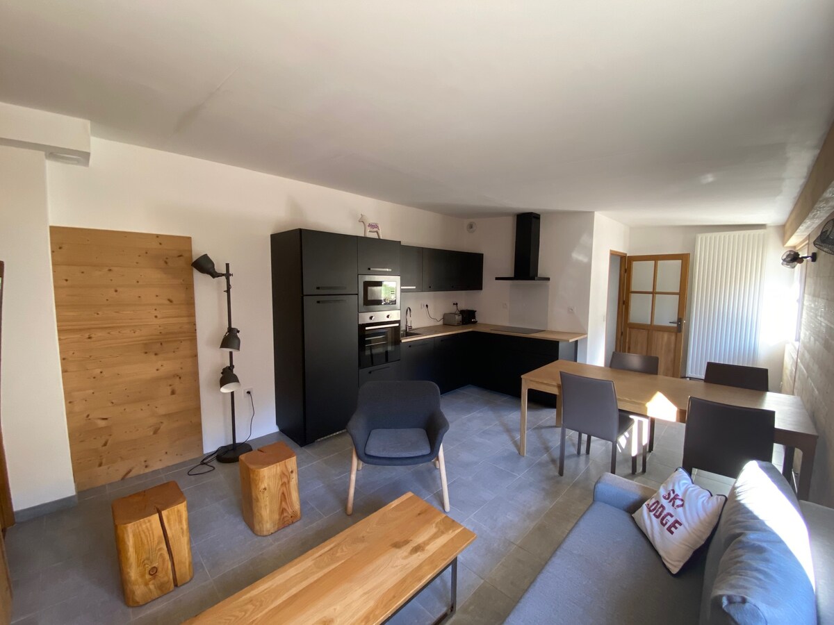 Luminoso apartamento de 2 habitaciones totalmente equipado idealmente situado en el corazón de Briançon. Se puede ir a todos sitios a pie. Perfecto para parejas y dos niños (sofá cama y dos camas individuales modulares) Aspectos destacados: ✨Apartamento completamente nuevo ❄️ 600 m de las subidas de Serre Chevalier y sus 250 km de pistas 📍Ubicación céntrica (mercado local a 50 metros, restaurantes cercanos) 🛜 Wifi de fibra óptica 🚗 Garaje privado en el lugar
