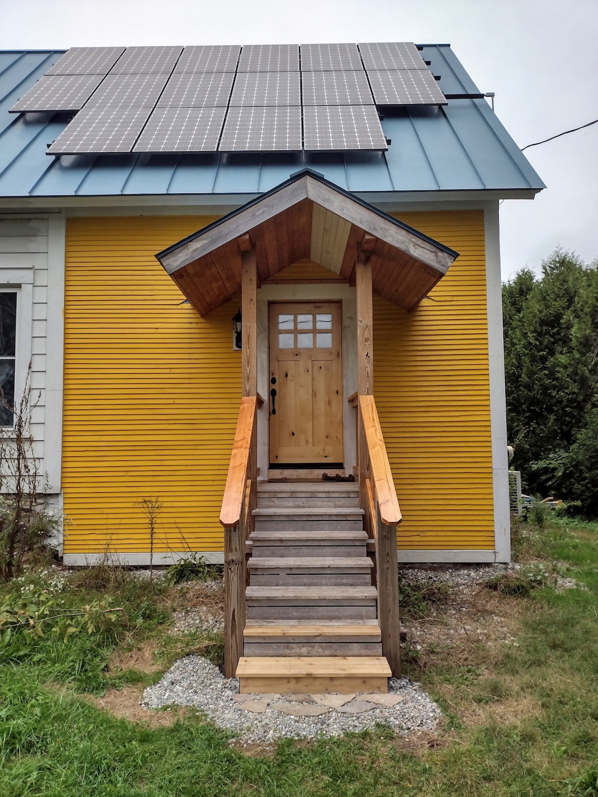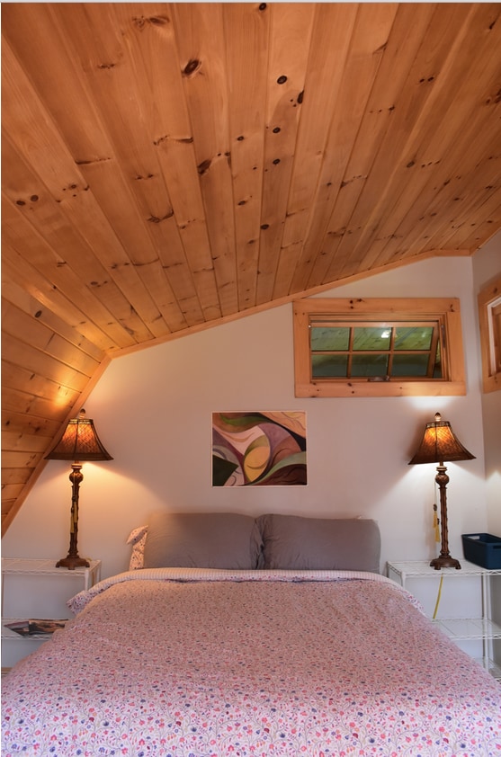 Este apartamento tipo estudio anexo a la casa principal tiene personalidad propia. Diseño contemporáneo con techos altos, ventanas de claristorio y un tragaluz. Los espacios incluyen una gran sala de estar/dormitorio, cocina/comedor, baño con ducha a ras de suelo y un vestidor contiguo con tocador y lavabo. También hay un espacio cubierto al aire libre para disfrutar. Los muebles incluyen una cama tamaño queen, 3 sillas cómodas, una pequeña mesa redonda y 4 sillas. La ubicación está a poco más de una milla del centro de Middlebury.