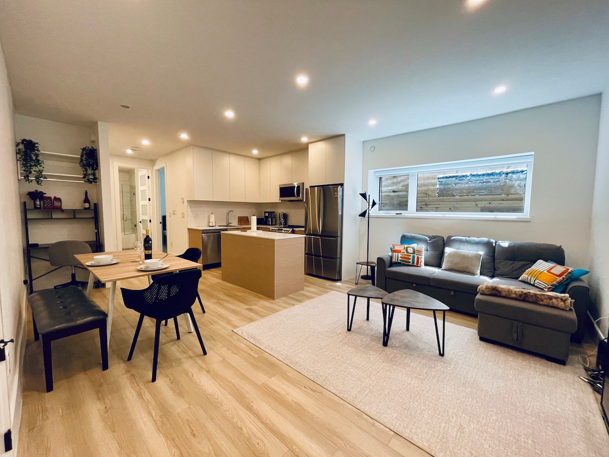Situado en el barrio de Pemberton Heights, 1055 pies cuadrados nueva unidad de sótano 2br con techos de 9’, ventanas y entrada independiente en una casa de 3 pisos. Lugar de estacionamiento gratuito, todos los servicios públicos incluidos, junto con la cuenta de Netflix para huéspedes. A 2 minutos en auto de HWY-1 (para ir a Whistler), a 15 minutos a pie del centro comercial Capilano, a menos de 30 minutos en auto del centro de Vancouver. A 4 minutos a pie de la escuela primaria Capilano. Incluye nevera completa, microondas, horno, lavavajillas, lavadora y secadora de tela, suelos calefaccionados, extintor de incendios y juegos de mesa.