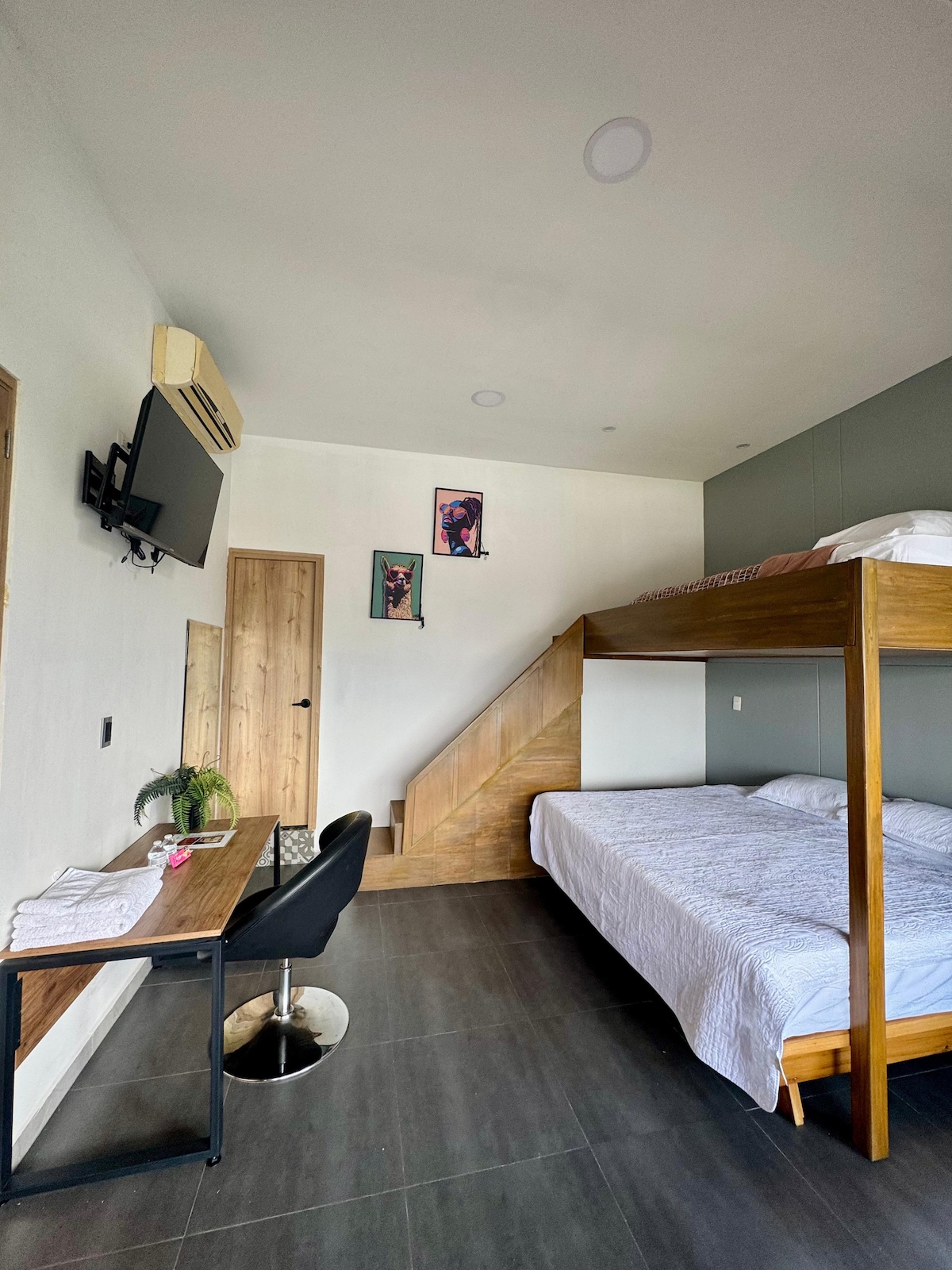Nuevo y moderno, seguridad privada y parqueadero gratis, ideal para familias que se dirigen a la Mesa de los Santos, Cañon del Chicamocha, Panachi, Cerro del Santisimo, HIC Hospital Internacional de Colombia, Bucaramanga, Floridablanca. Ubicación estratégica para turismo y negocios en Santander Cuenta con una tipo Queen, un sofa cama doble y cama inflable queen. Espacioso, fresco, tranquilo, luz natural, buena ventilación y electrodomésticos de última tecnología, parqueadero privado.