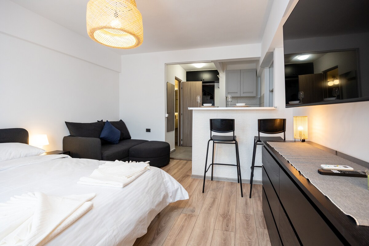 Entra en el apartamento Bumblebee, donde la comodidad se une a la vida urbana elegante. Este apartamento de un dormitorio bellamente diseñado en el centro de Bucarest tiene capacidad para cuatro personas, ideal para parejas, familias o viajeros de negocios. Disfruta de un diseño contemporáneo, habitaciones espaciosas y servicios de primer nivel, la combinación perfecta de comodidad y conveniencia y una ubicación privilegiada cerca del Ateneo Rumano, el Palacio Real y Calea Victoriei, que ofrece los mejores lugares de interés gastronómico, de entretenimiento y cultural de Bucarest.