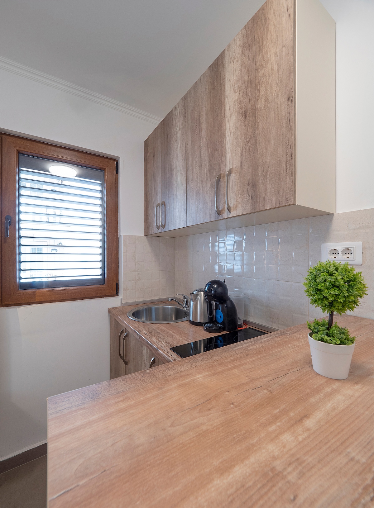Este apartamento tipo estudio tiene una cama doble y un sofá, cocina totalmente equipada y también hay un armario con perchas. Proporcionamos sábanas en todas las camas. Refréscate en el acogedor baño y con todas las cosas necesarias que proporcionamos. El sofá se puede utilizar como cama extraíble para un adulto o dos niños. En la terraza amueblada podrás disfrutar de tu café por la mañana. Ofrecemos conexión wifi gratuita en todos los apartamentos y TV por cable en la pantalla plana. Ofrecemos estacionamiento gratuito delante del edificio.