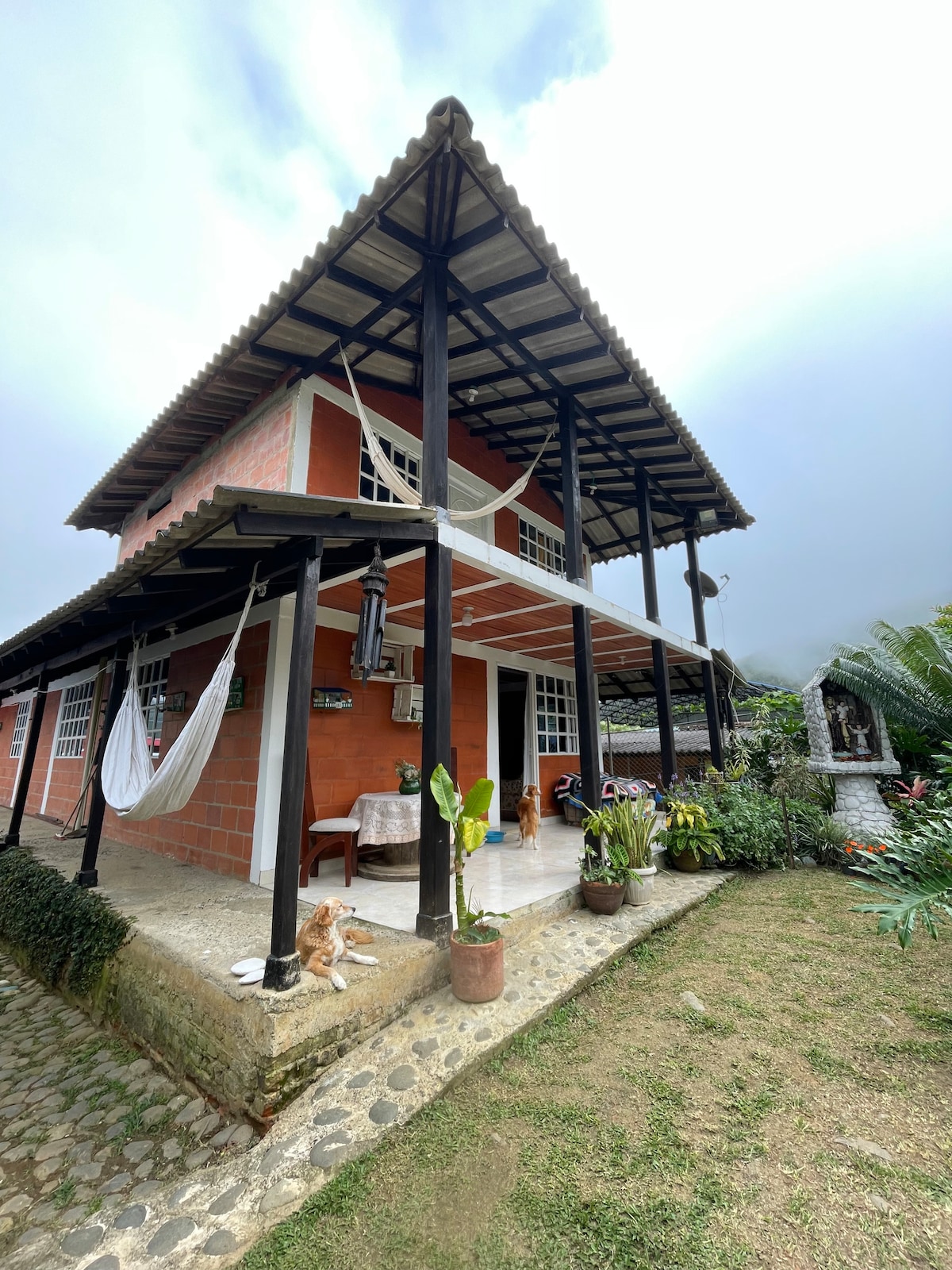 Un lugar para reír, descansar y vivir despacio. Dos cabañas acogedoras: la principal con 3 habitaciones, 2 baños, sala, comedor y chimenea; la segunda con 2 habitaciones, baño, cocina, sala y balcón con vista a la montaña. 2 baños aux. Disfruta piscina iluminada, jacuzzi, zona BBQ, fogata, zonas fotograficas, billar, juego de sapo, guadual con amacas, casa en el árbol, senderos, juegos infantiles y cancha. Diversión de día, calma de noche. Precio de lunes a jueves $900.000 max 12 personas.
