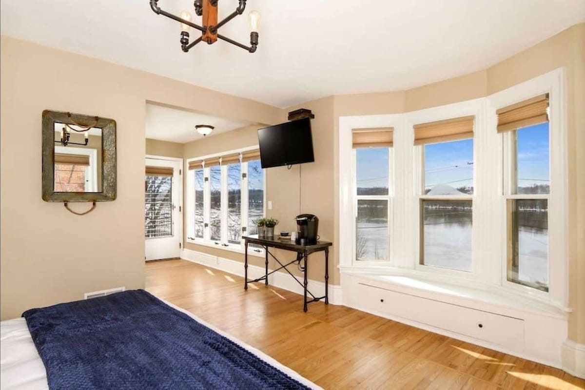 ¡Descubre esta joya escondida en el corazón de Wabasha! Este apartamento de 2 dormitorios y 2 baños totalmente renovado combina el encanto histórico con el confort moderno. Camina hasta el Eagle Center, el quiosco de música frente al río y los restaurantes del centro. Disfruta de una nueva cocina, una amplia sala de estar y comedor, chimenea y una gran terraza con vistas al río Mississippi, todo completamente amueblado para tu estancia. Además, ¡obtén un 50 % de descuento en el simulador de golf Wild Wings en Lake City cuando reserves!