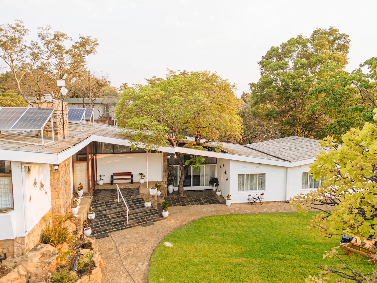 Relájate en este espacio tranquilo y elegante. Ubicado en una gran ubicación céntrica pero tranquila, este espacio te hará volver cada vez que estés en la ciudad. Estamos rodeados de los mejores restaurantes de Bulawayo y a poca distancia a pie de las presas de Hillside y el centro comercial Hillside.
