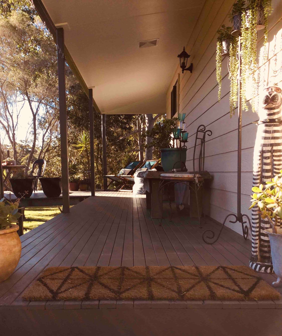 Alojamiento aislado, que admite mascotas, tranquilo y semi-rural en 10 acres tranquilos cerca de lagos y playas. Deja atrás todas tus preocupaciones mientras te relajas en una hamaca y lees un libro entre los árboles de goma o te sientas en la terraza orientada al norte y observas las travesuras de los pájaros o las nubes que pasan suavemente. Duerme con la canción de cuna de las ranas y despierta renovado con los cantos de los pájaros nativos. Araluen es la escapada perfecta del ajetreo y el bullicio. Si eres como nosotros, nunca querrás irte.