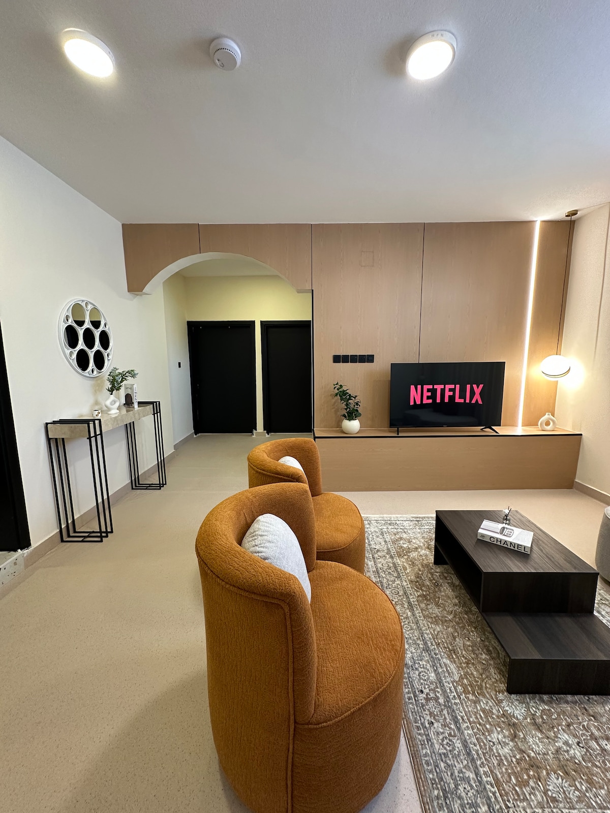 Experimenta la mezcla perfecta de lujo moderno y comodidad tranquila en un apartamento de hotel con un diseño bohemio cálido y moderno, ubicado en el barrio de Fayziyah, junto al jardín, a solo unos pasos. La ubicación también está cerca de todas las necesidades diarias El departamento se encuentra en un hotel moderno con una hermosa entrada y pronto tendrá algunos servicios del hotel como piscina, gimnasio y sección de masajes. Todas las necesidades están disponibles en el apartamento y cuenta con un dormitorio espacioso con una cama principal equipada con fieltro y una sala de estar con su hermoso diseño y una pantalla inteligente de 70 pulgadas con Netflix, YouTube y Shahid, hay una sesión de barra lateral