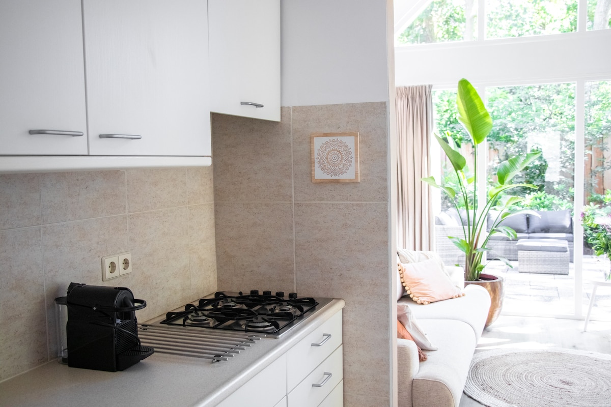 Pasa la noche en un alojamiento bellamente decorado que incluye sauna de infrarrojos privada con ducha, baño independiente y aire acondicionado en el centro de Schagen. Tienes la casa de huéspedes completa a tu disposición con vistas a un amplio jardín donde puedes sentarte en la terraza y disfrutar del sol. ¡El mejor disfrute, relajación y recuperación es posible con nosotros! La ubicación es ideal para viajes a Schagen ( 250 m), playa (25 minutos en bicicleta y 10 minutos en coche). Alkmaar (25 minutos en coche).