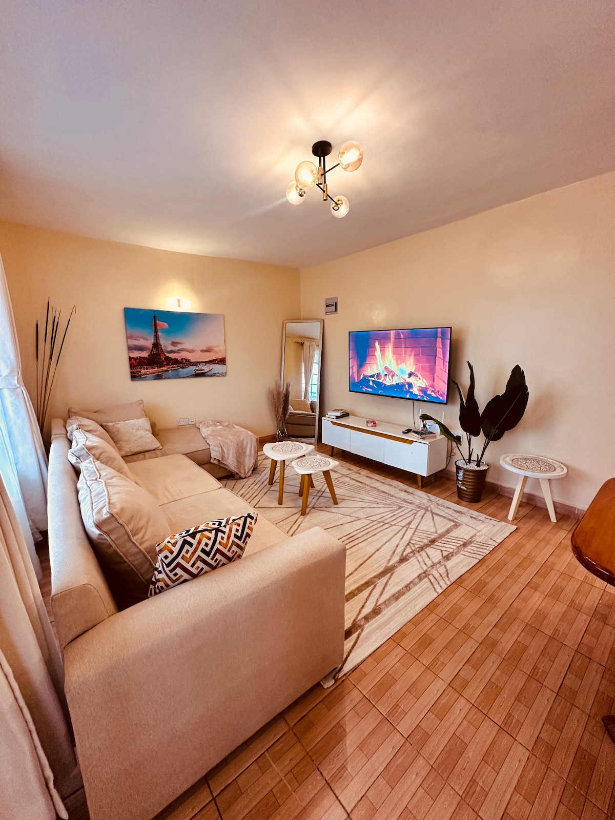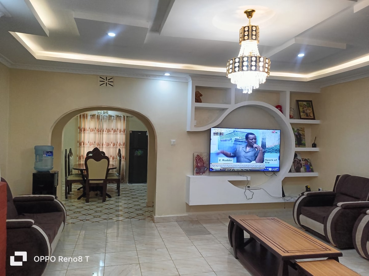 Bienvenido a nuestro BnB de 3 dormitorios y 2 baños ubicado en un barrio tranquilo. La propiedad ofrece fácil acceso al aeropuerto y a la ciudad de Eldoret, y cuenta con un amplio aparcamiento. Disfruta de llegada autónoma, wifi rápido y un televisor inteligente en la amplia sala de estar. El dormitorio principal tiene baño privado y hay una cocina totalmente equipada con acceso a un patio trasero. Los huéspedes tienen acceso a una piscina compartida y a un gimnasio. El anfitrión está disponible para ayudarte. Disfruta de comodidad, seguridad y conveniencia durante tu estancia.