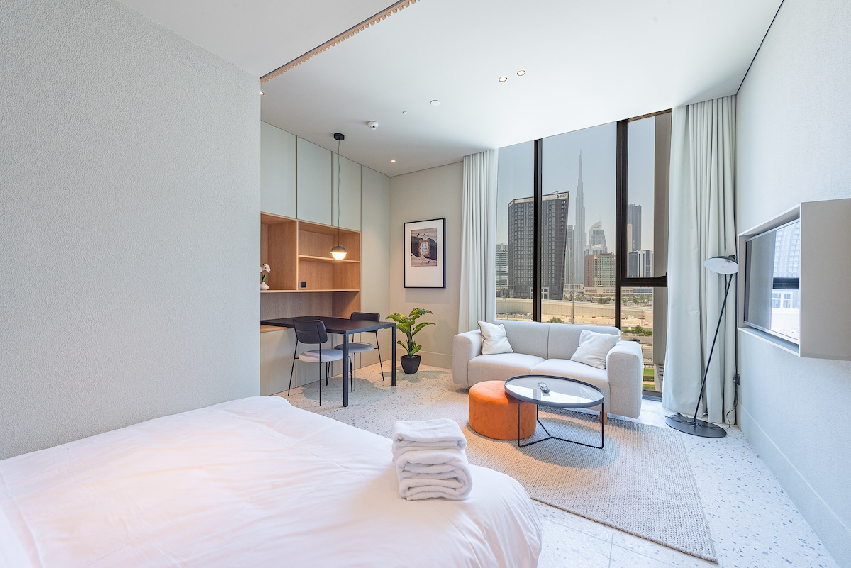 Este moderno apartamento en Business Bay ofrece una ubicación inmejorable en el corazón de Dubái. Disfruta de unas vistas impresionantes del Burj Khalifa y del impresionante horizonte. Con restaurantes, cafeterías y un supermercado cerca, todo lo que necesitas está a tu alcance. El diseño elegante, el ambiente cómodo y las comodidades exclusivas hacen de este apartamento el refugio perfecto tanto para viajeros de negocios como de placer.
