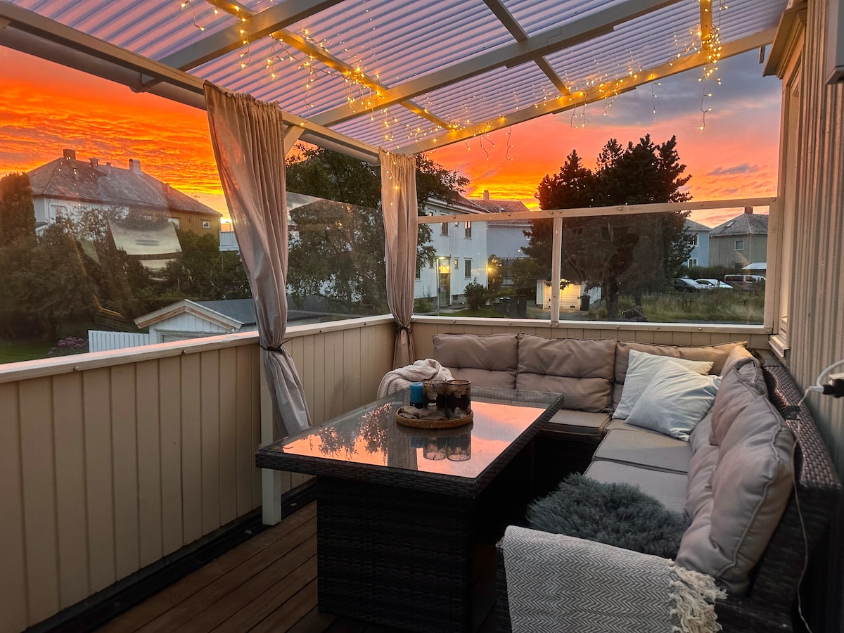 Nyt fantastisk panoramautsikt fra en nyoppusset og romslig leilighet over to etasjer, 2.etasje og loft. Beliggende landlig og fredelig på Ranheim, med to solrike terrasser. Kort vei til marka og kun 10 min til Trondheim sentrum. Leiligheten har tre soverom og en sovesofa, plass til opptil 8 personer. Perfekt for familier eller vennegrupper som ønsker komfort, ro og nærhet til både natur og by. Gratis parkering, elbil-lader, WiFi, fullt utstyrt kjøkken, to stuer, sengetøy og håndduker inkludert.